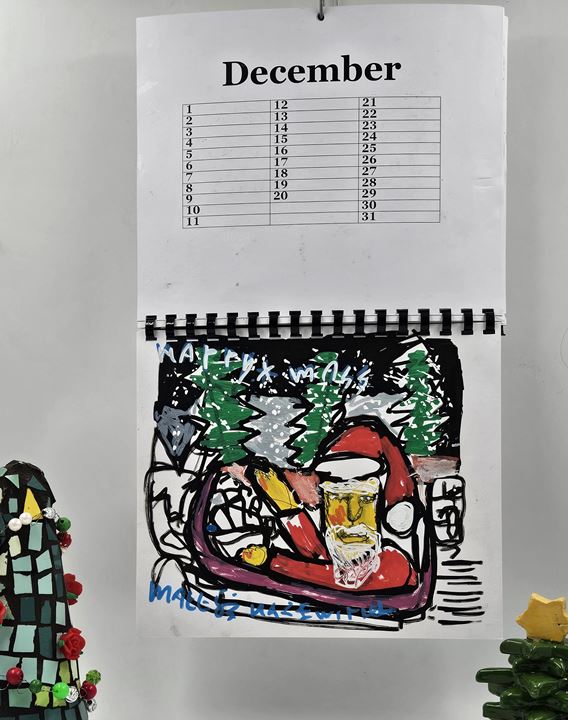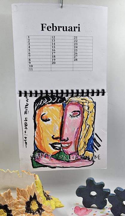 Er zit veel werk in deze kalender hij is geheel zelf in elkaar gezet helemaal naar eigen idee van de kunstenaar.