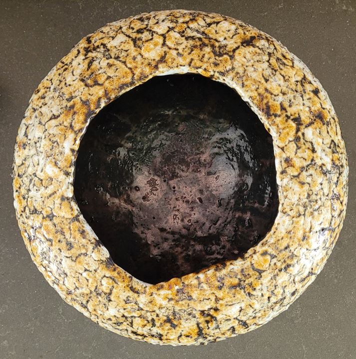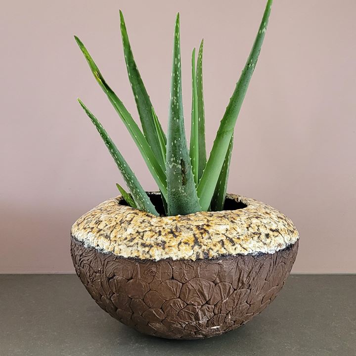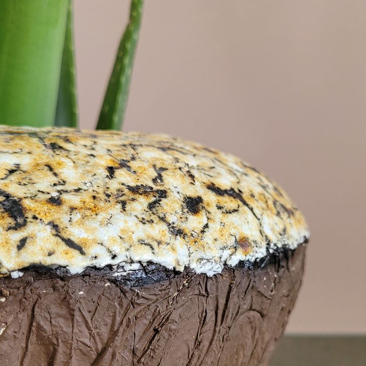 De onderlaag is ongeglazuurde en de bovenlaag is geglazuurd. Dat geeft een heel mooi effect. Prachtig als solo object of met een plant.