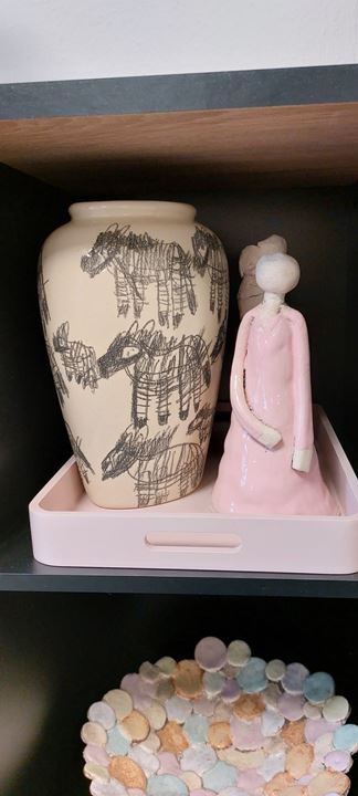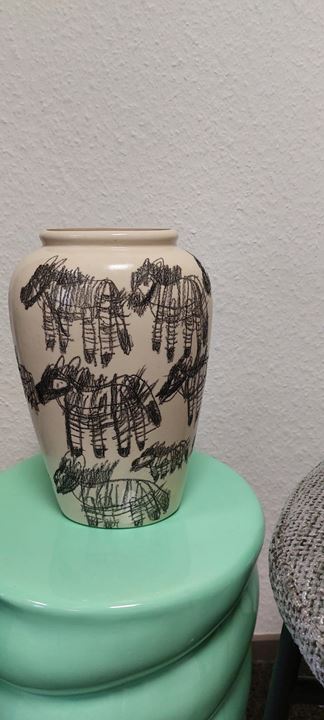 Op deze vaas heeft hij zijn typische zebra's getekend.
